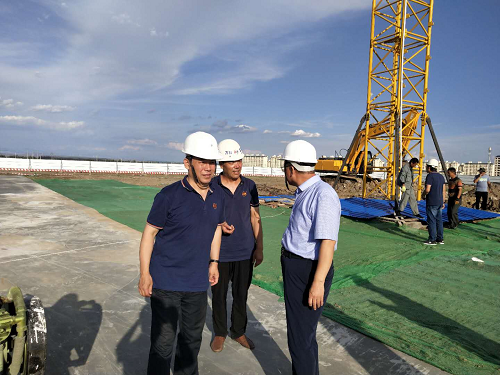 分公司領導穆利和陪同董事長兼總經(jīng)理陳有平等人到工地現(xiàn)場進行檢查。