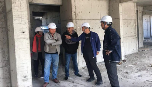 副總經理高瑞軍(右二)在清宜林海岸二期工程針對“混凝土外觀質量問題”對各專業(yè)監(jiān)理工程師進行技術指導