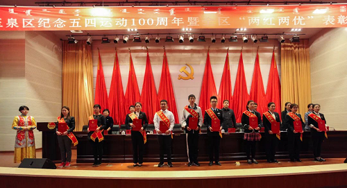 萬和項管十七團支部書記劉亞茹參加“兩紅兩優(yōu)”表彰大會(左四)