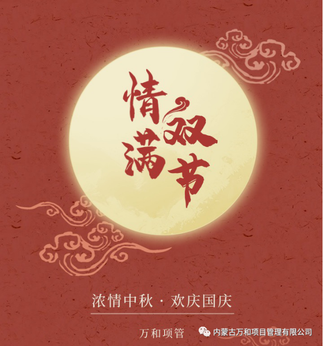 公司的發(fā)展凝聚著廣大干部員工的智慧和辛勤付出,同時也離不開合作伙伴的默默支持。值此雙節(jié)來臨之際,萬和項管向公司廣大員工及家屬致以誠摯的祝福和親切的問候!祝愿大家身體健康,闔家辛福,工作順利!祝大家國慶節(jié)和中秋節(jié)“雙節(jié)”快樂!也祝愿一直以來支持、幫助萬和項管發(fā)展的兄弟單位、合作伙伴事業(yè)蒸蒸日上,繁榮昌盛!祝愿我們的事業(yè)永續(xù)輝煌!