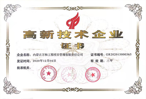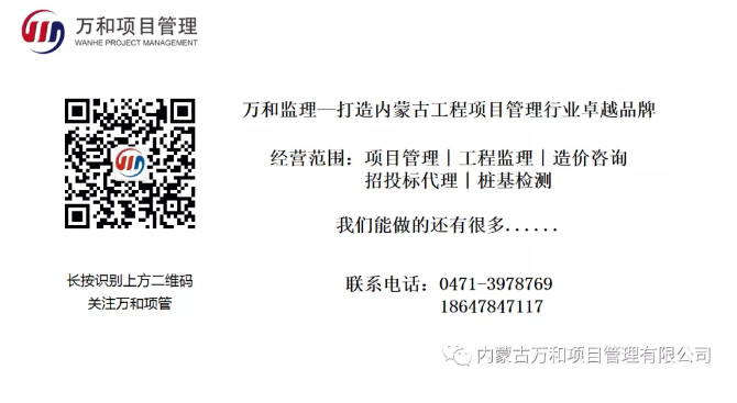內(nèi)蒙古萬和工程項目管理有限責(zé)任公司是原建設(shè)部批準(zhǔn)的三甲級企業(yè);(房屋建筑工程監(jiān)理、市政公用工程監(jiān)理、工程造價咨詢)是“三標(biāo)一體”管理體系認(rèn)證和商標(biāo)注冊企業(yè),主要從事房屋建筑、市政公用工程監(jiān)理、礦山與機電安裝工程監(jiān)理、工程造價咨詢、全過程項目工程咨詢與項目管理、招標(biāo)代理,政府采購及地基基礎(chǔ)工程檢測等業(yè)務(wù),是中國建設(shè)監(jiān)理協(xié)會理事單位,內(nèi)蒙古工程建設(shè)協(xié)會副會長單位以及呼和浩特市建筑業(yè)協(xié)會監(jiān)理專業(yè)委員會副主任單位,在內(nèi)蒙古各盟市均設(shè)有分公司。2009年內(nèi)蒙古住房和城鄉(xiāng)建設(shè)廳批準(zhǔn)取得樁基檢測實驗室資質(zhì);2013年內(nèi)蒙古自治區(qū)人防工程辦公室批準(zhǔn)取得人民防空資質(zhì)(可承擔(dān)內(nèi)蒙古自治區(qū)抗力等級5級以下人民防空監(jiān)理業(yè)務(wù));2017年取得了招標(biāo)代理資質(zhì);2019年取得礦山與機電安裝工程監(jiān)理乙級資質(zhì)。2020年經(jīng)內(nèi)蒙古自治區(qū)科學(xué)技術(shù)廳批準(zhǔn)獲得“國家高新技術(shù)企業(yè)”。