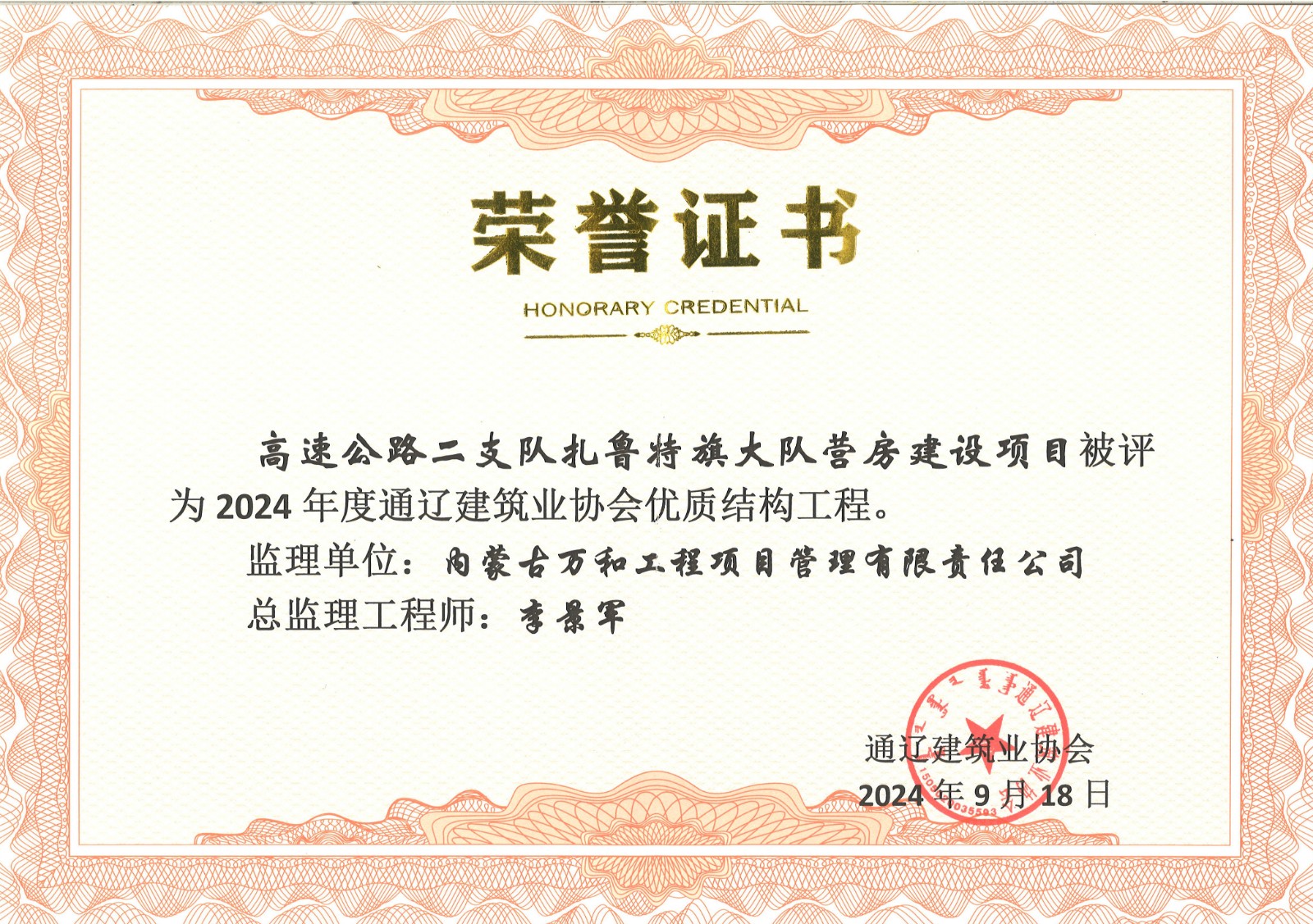 高質(zhì)量、高標準的精品工程